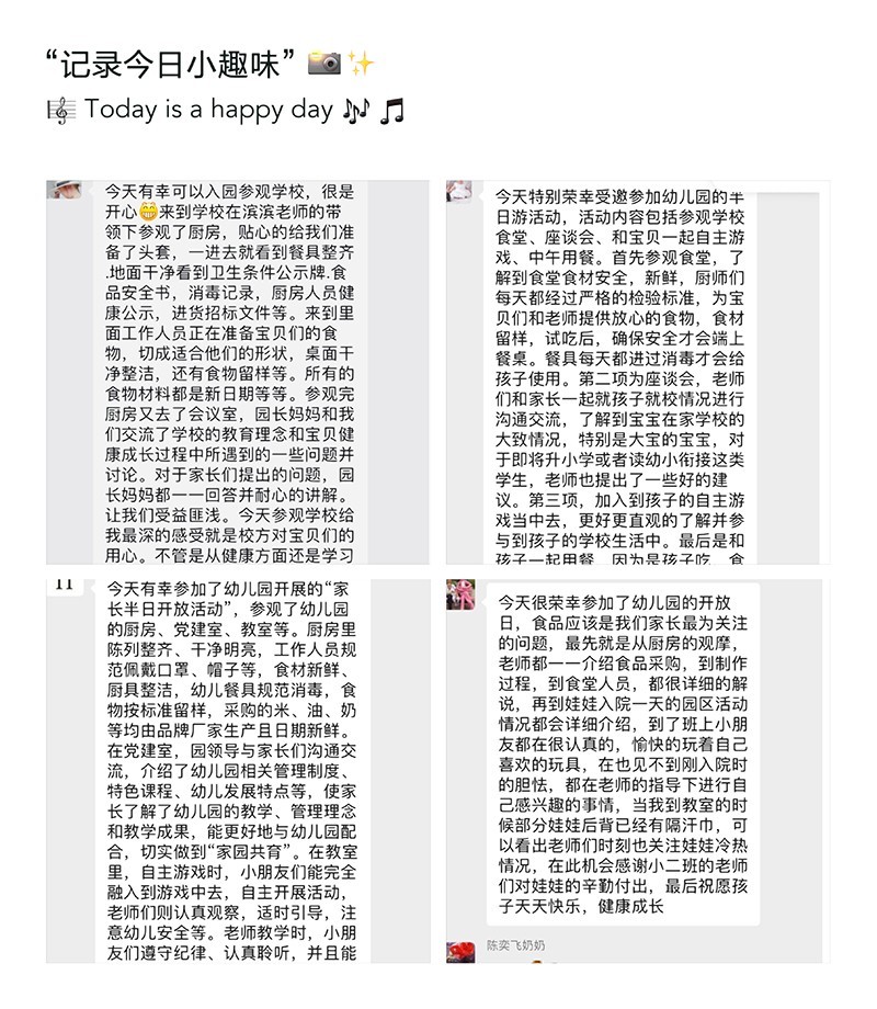 最美的声音,是家园同频的回响;最好的教育,是家园共育的互动。家长开放日,对孩子而言是温暖、是爱,是父母陪伴的快乐回忆;对家长而言是共同成长的无尽回味,是见证孩子成长的体验。本次活动通过家长的参与,让家长对幼儿园有了更深得了解,不仅增进了家长与幼儿园之间的相互了解,拉近了彼此之间的距离,同时也能够让孩子们在凤幼这个温暖而快乐的大家庭里健康茁壮的成长!(朱明珠)