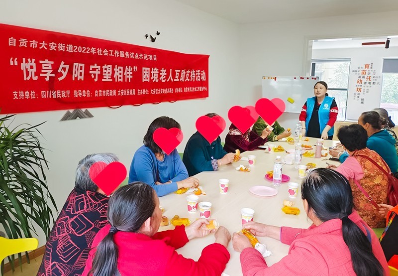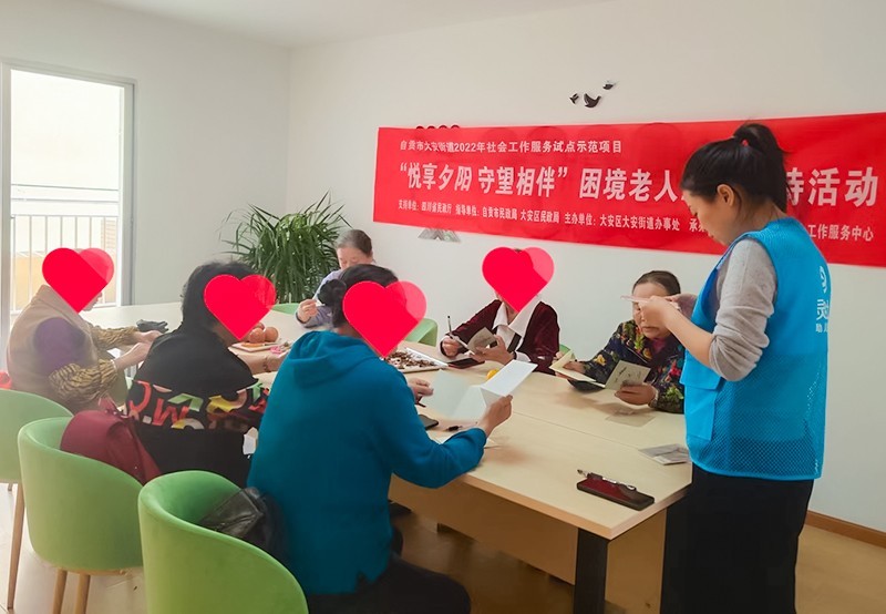 为更好地服务四川省自贡市大安区大安街道困境老人,促进老人身心健康发展和提升生活幸福感、集体融入感和归属感,10月下旬开始,由四川省民政厅支持,自贡市民政局、大安区民政局指导,大安区大安街道办事处主办,自贡市灵志社会工作服务中心承办的自贡市大安区大安街道2022年社会工作服务试点示范项目——“悦享夕阳 守望相伴”困境老人互助支持小组活动于11月底圆满结束。