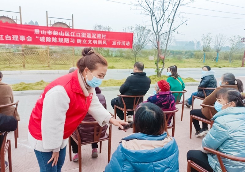 为革除泥湾村天价彩礼、大操大办、薄养厚葬、炫富攀比、铺张浪费、随礼泛滥等歪风陋习的现象,进一步加强泥湾村婚事新办、丧事简办、余事不办、殡葬改革、文明祭祀的观念。近日,四川省眉山市彭山区新时代文明实践中心在江口街道泥湾村刘家大院开展了以“破除陈规陋习 树立文明新风”为主题的移风易俗宣传活动。