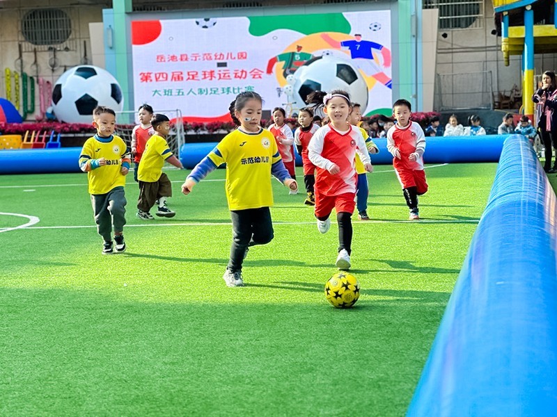 为了更好的响应“足球从娃娃抓起”的号召,贯彻和落实幼儿足球普及工作,增强幼儿身体素质,引导幼儿养成健康的生活习惯,打造积极向上的校园文化,给更多的幼儿提供一个“乐享足球、健康成长”的平台,12月12日—14日,四川省广安市岳池县示范幼儿园开展了以“‘足’够精彩 ‘球’动未来”为主题的第四届足球运动会。