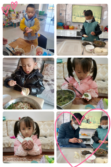“ 冬至不端饺子碗,冻掉耳朵没人管。”在爸爸妈妈爷爷奶奶的帮助下宝贝们一步步制作出属于自己的小饺子。一个个小饺子在他们的创作下活灵活现,仿佛会溢出香味,熏满整个冬日!