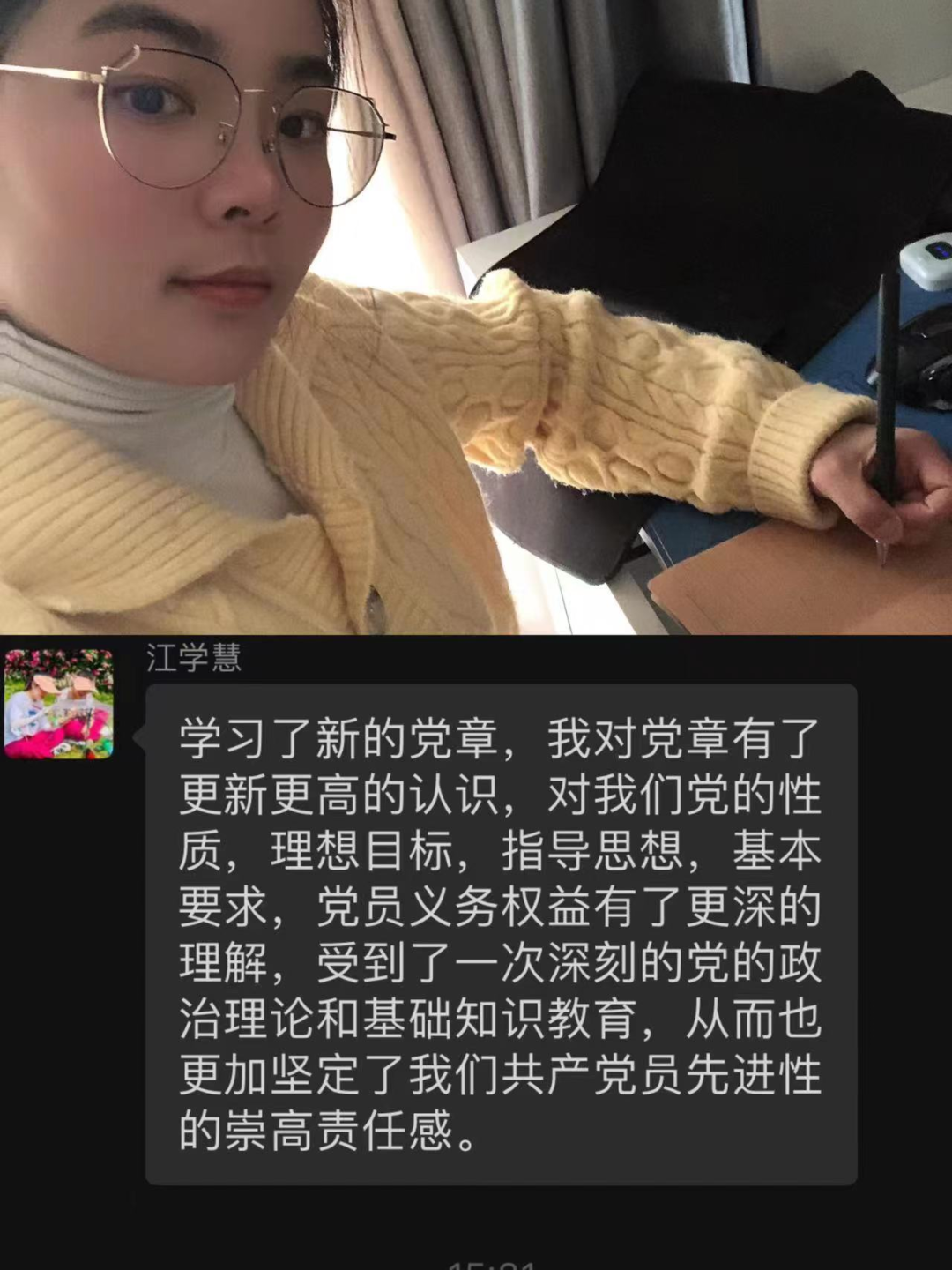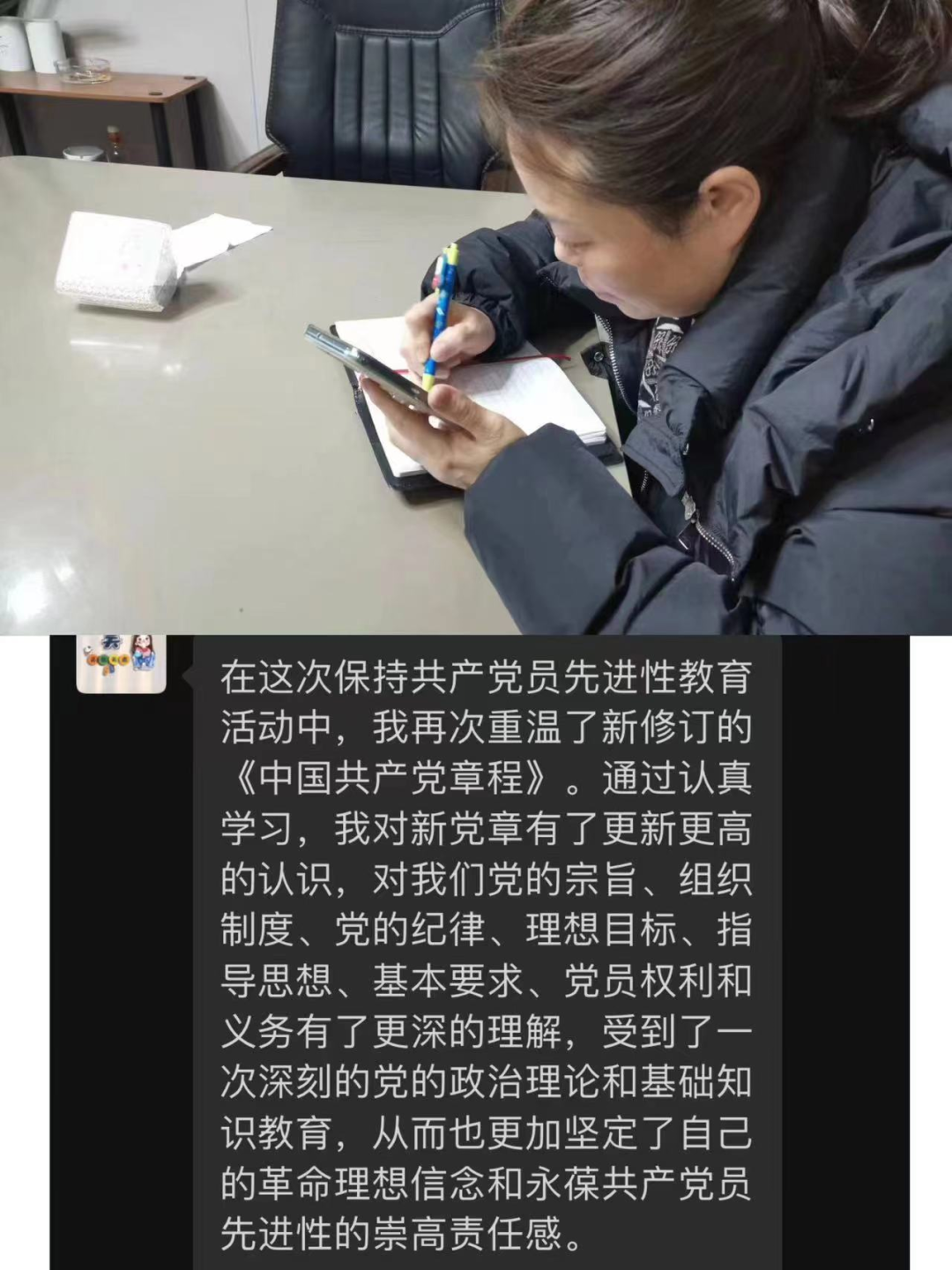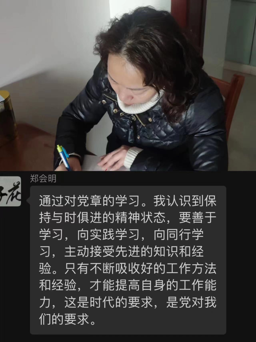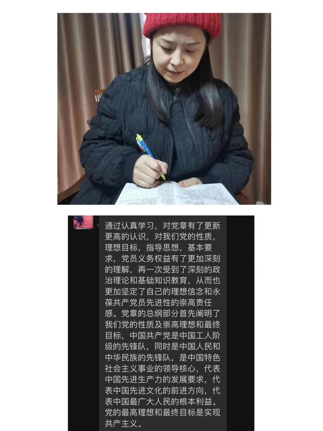 首先党支部书记杜文芳就二十大新修改的《中国共产党章程》,与大家谈论了几点体会。