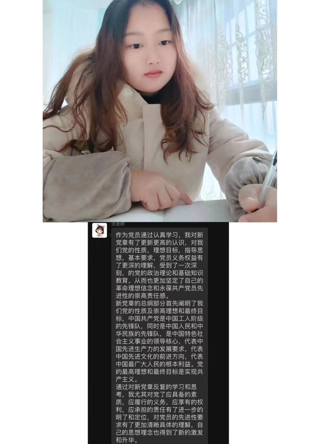 最后,党支部书记杜文芳同志进行总结发言,要求幼稚园全体党员要坚持不懈深化对新党章的学习,牢牢掌握新党章的精神实质和具体要求。坚持原原本本学、逐字逐句学、全面系统学、融会贯通学、联系实际学,把自己摆进去、把职责摆进去、把工作摆进去,做到学而懂、学而信、学而用。严格遵守党章,自觉用党章统一思想、规范言行,内化于心、外化于行。把学习贯彻新党章与学习贯彻党的二十大报告精神结合起来,一体学习、一体领会、一体把握。她要求所有党员及入党积极分子通过学习新党章知识,认真撰写一篇心得体会,全面反映对对党章的认识、学习成果,进一步加深对党章知识的理解和掌握,并严格遵守。(许丹妮)