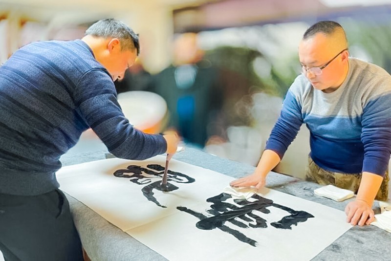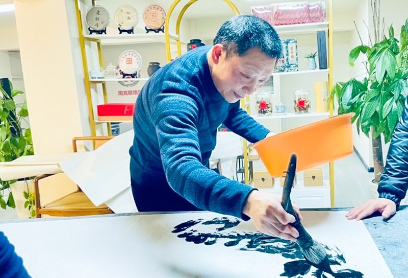 2022年岁末年初之际,共产党员、中国书法家协会会员、中央国家机关书法家协会理事、中国书画家协会理事、中国将军诗书画院书法教授、国家一级美术师、四川省南充市政协委员、顺庆区政协常委、南充市青少年宫书法专业负责人何文军,来到四川省退役军人就业创业服务促进会——南充联络部,挥毫题字并送上祝福。