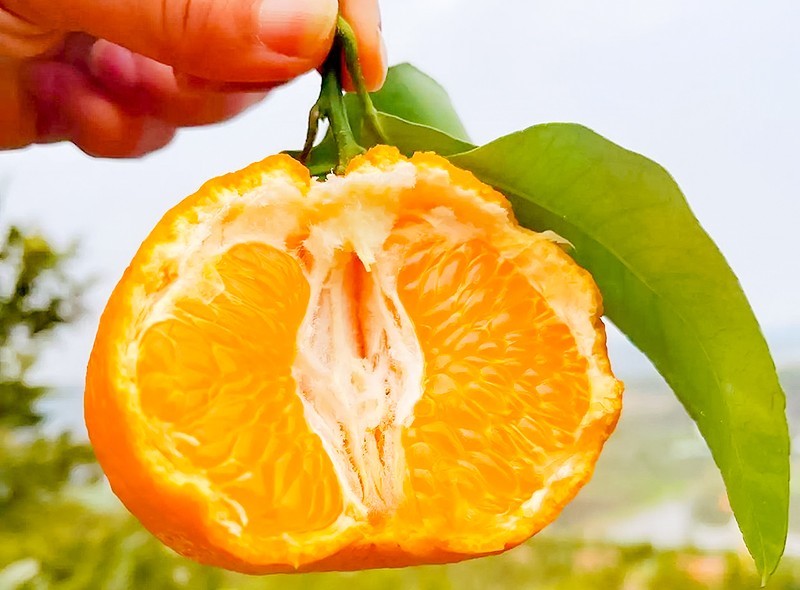 “如果爱吃柑橘类的水果,又想不上火、甘甜、好剥的,被称为“懒人水果”的春见耙耙柑是你不二的选择。”胤熙农业老总杨云一边介绍,一边掰开自己手中的耙耙柑,“耙耙柑果皮薄软、果肉细嫩,颗粒分明,酸甜可口、汁水丰厚、不用削皮不用洗,剥开就能吃,非常甜。”