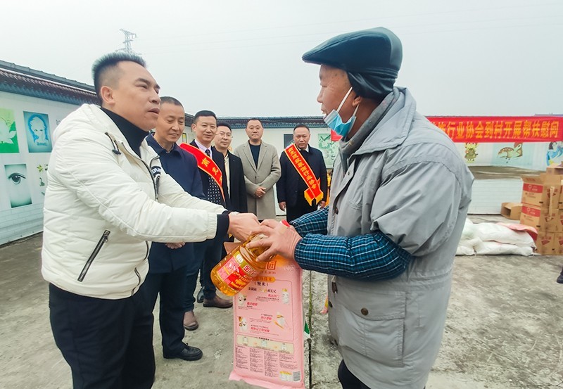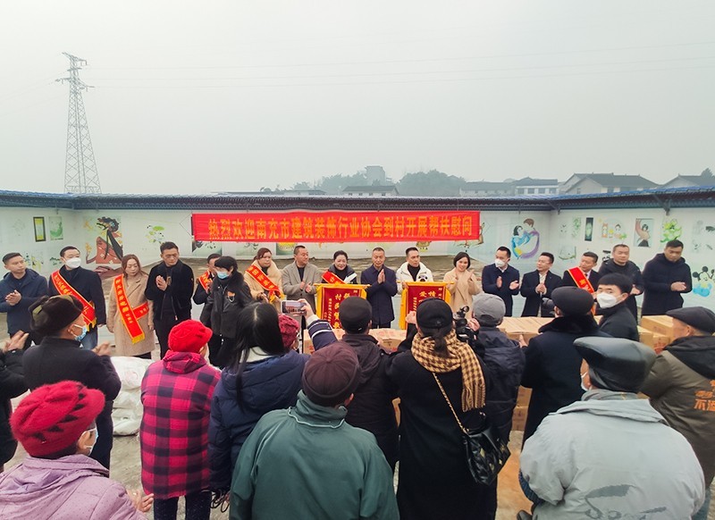 1月13日上午,南充市建筑装饰行业协会在高坪区螺溪街道保安院村党群服务中心开展帮扶慰问活动,为螺溪街道150名余名困难群众送去价值4万余元的生活物资。