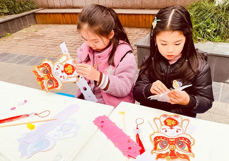 揭牌仪式后,新春游园活动正式开始。游园分为新春敲锣、新春猜谜、新春投壶三个游戏。有趣好玩的新春小游戏吸引了众多居民的参与,孩子们尤其兴奋,每个人手上都拿着参加活动兑换的奖品。兔儿灯DIY区也热闹非凡,一只只兔子宫灯相继点亮,寄托着居民们对美好生活的期许,欢乐祥和的春节氛围在一张张笑脸中洋溢开来。居民纷纷表示,通过为居民搭建的公共交流空间,极大的促进了邻里感情,多样化的活动开展,丰富了大家的业余生活。