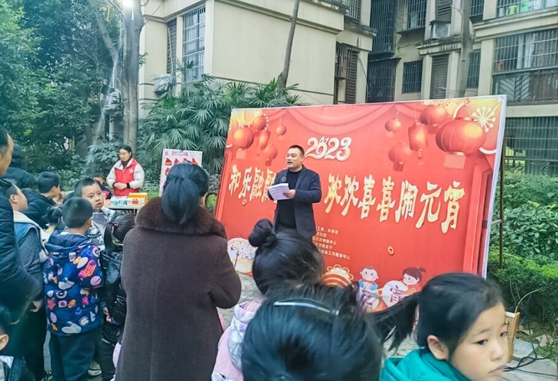 为喜迎元宵佳节,营造欢乐祥和的节日氛围,进一步提升基层治理精准化、精细化水平,在富源路街道党委、办事处的指导下,富源路街道楠木社区以党建引领·五善行动为契机,充分发挥“五社联动”机制作用,联合亦美物业景逸华府物业中心、遂宁农商银行富源路支行、遂宁艺宁妇女儿童社会工作服务中心等单位于2月4日晚在景逸华府小区开展了“和乐融融庆佳节、欢欢喜喜闹元宵”活动。