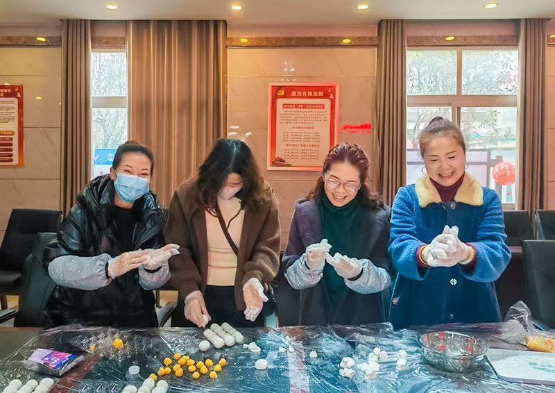 今天咱们的元宵是DIY纯手工制作。在活动过程中,几位嬢嬢们耐心的教大家如何和面、怎样调配元宵的馅料等等,大家有序的进行着。在一阵阵欢声笑语中,汤圆出锅啦!白白圆圆的芝麻馅儿汤圆,加入白糖和桂花,喝一口汤,吃下一个汤圆,寓意着“阖家团圆,幸福美满”,为居民们在寒冷的天气里送来一份香甜和温暖。
