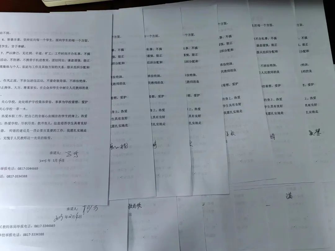 全体教师郑重签订了《师德师风承诺书》,进一步增强了全体教师依法从教、廉洁从教观念,为营造风清气正的育人环境夯实了基础。承诺书的签订,既是教师对自己行为的一种约束,更是一种鞭策。