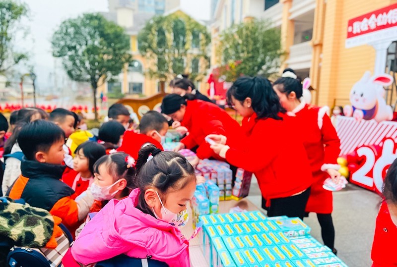 走进校园,孩子们迎来的是充满了仪式感的“拆红包”环节,通过红包兑换了礼品的孩子们脸上洋溢着喜悦的笑容。
