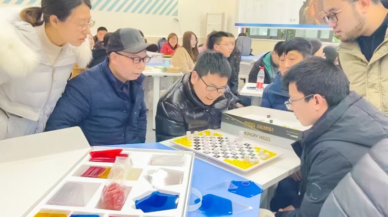 来自中教股份的专业培训讲师从时代背景、政策背景、学科背景三方面入手向参会老师讲述了数学研究实验室建设的背景和意义,并给大家重点培训了立体几何教学装备、数学素质教育资源库、几何画板教学资源、超级画板教学资源的使用方法及教学价值。通过对立体几何模型、三维立体几何模型教学系统、模块化几何模型搭建套装三部分展开讲解,并搭配观看了优质课视频,激发老师开发课程的兴趣。期间老师们的表现了极高的参与度,并兴致勃勃的自己动手搭建几何体做实验来解决数学问题,老师们纷纷表示这样的互动交流非常有利于吸取“养分”应用到教学中去。
