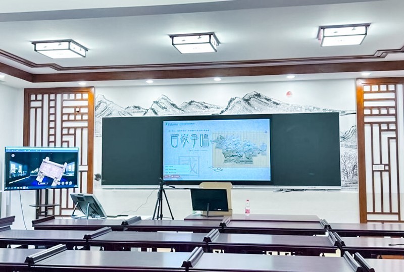 数字化历史教室从数字化教学设备到壁纸灯具,精心打造了一间能让学生沉下心来学习的教室。在建设布局上以数字化历史虚拟地图、数字历史年鉴图、历史全息交互教学系统、历史AR教学系统、历史教学沙盘演示系统、中学历史推演实验系统、仿古的学生桌凳、仿古工艺展柜及各种仿真历史模型,仿古知识窗帘及仿古壁纸等为主导,整体营造历史学科教学环境氛围。教室在设计上充分考虑了三维空间的效果,室内布局主次井然有序,古朴典雅,气势恢宏。