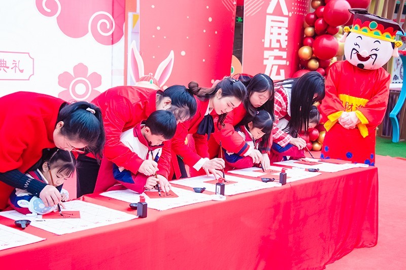 典礼中,伴随着雄壮的国歌,五星红旗冉冉升起,激发了孩子们内心的爱国之情。邹长凤园长在新的学期和孩子们进行了一场春天的约定:要坚持做到认真吃饭,强壮身体,勇敢探索,热爱劳动。文梓悦小朋友作为幼儿代表发言表达出对新学期新生活的期待。在新年题“福”活动中,老师与孩子们共同写福、送福、贴福,表达对新学期的美好向往和祝福。