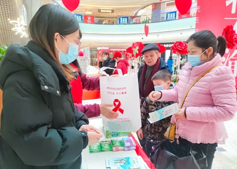 为倡导广大市民朋友树立安全性行为理念,提升安全套的可及性与使用率,2月13日,在国际安全套日来临之际,四川省南充市高坪区疾病预防控制中心联合高坪区志愿者协会在王府井广场开展了形式多样的安全套推广活动,南充市艾防协会秘书长何川、高坪区疾控中心副主任彭麒龙参加活动。