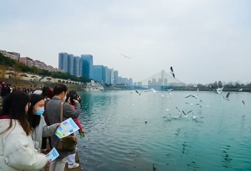 2月11日下午,民建南充花鸟园林支部和南充市鸟类救助站在嘉陵江畔联合开展“保护嘉陵江野生鸟类,从正确投喂开始”宣传活动,吸引了不少市民们热情参与。