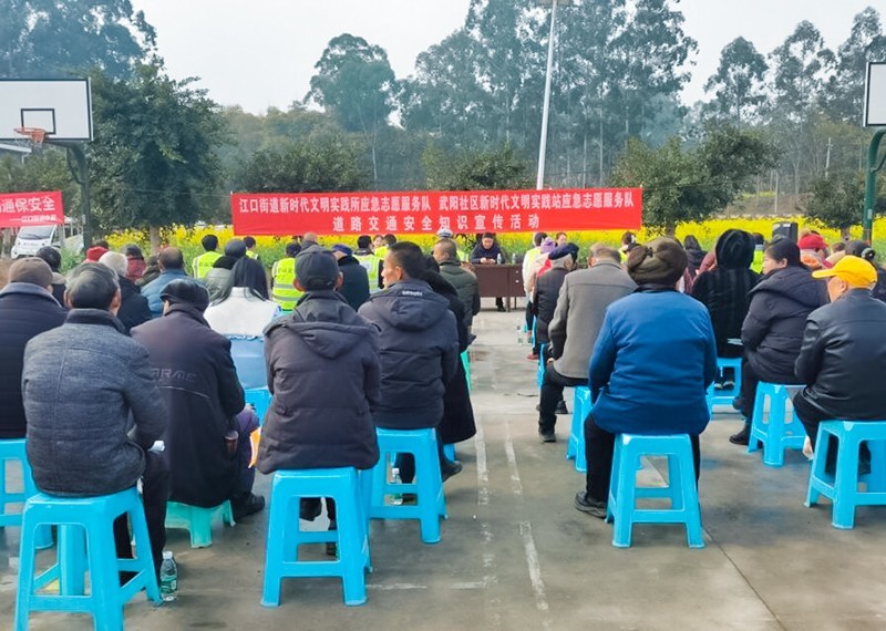 为进一步提高广大社区群众道路交通安全意识、遵法守法和文明出行意识,预防和遏制道路交通事故的发生,营造良好的道路交通环境,2月23日上午,四川省眉山市彭山区江口街道新时代文明实践所联合武阳社区新时代文明实践站应急志愿服务队以“文明出行,当好交通安全第一责任人”为主题,深入武阳安置小区积极开展道路交通安全知识宣传活动。