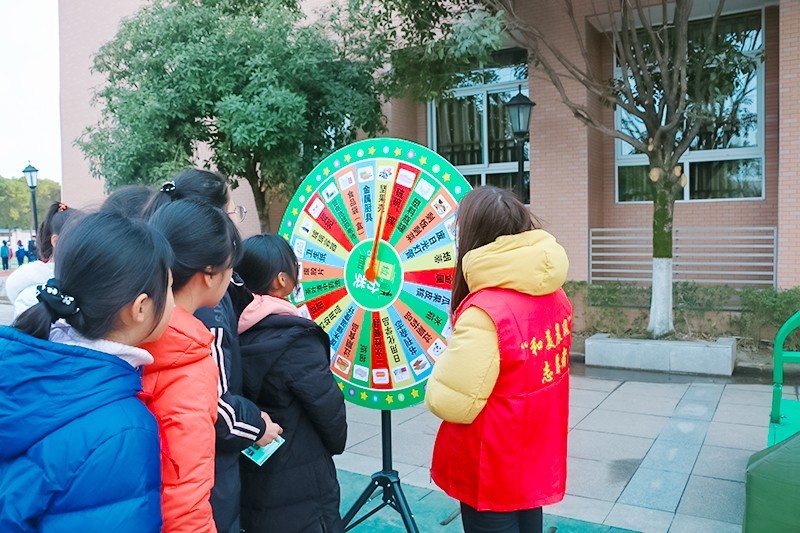 “城市文明靠大家”、“垃圾分一分,环境美十分”“配合垃圾分类,争做文明市民”各类宣传牌、宣传册、彩色幸运转盘、垃圾四分类展架、微型四分类垃圾桶和垃圾分类环保飞行棋等游戏道具将整个篮球场的环保氛围烘托了起来,引来不少同学驻足观看。