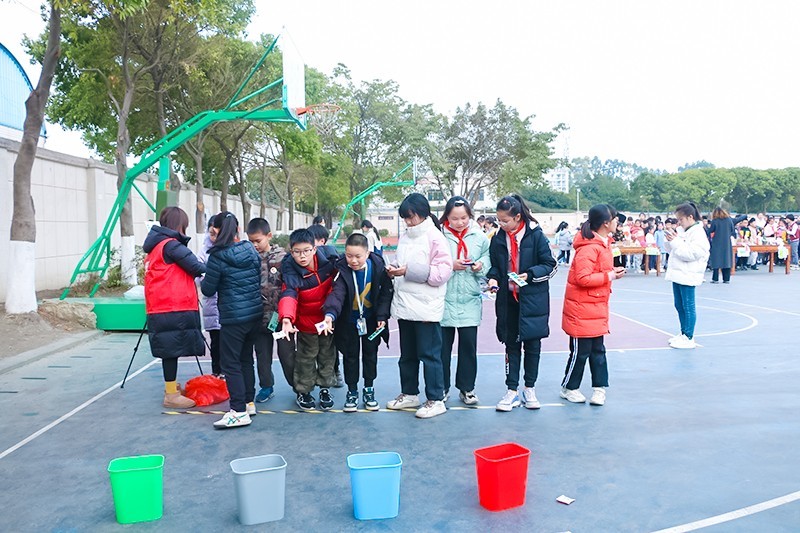 领到游园卡后,同学们有序进入游园区参与‘走!一起“趣”游园’的四个环节,其中“‘垃圾’在哪儿”环节赢得了大多数同学的青睐,由六年级学生扮演的“垃圾小人儿”,让本环节既有趣又有意。