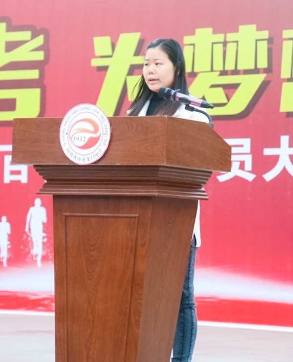 高三教师代表李秋婷老师在这决战前的关键时刻希望同学们要端正心态,戒骄戒躁;脚踏实地,筑牢基础;坚持不懈,全力冲刺。终有一日同风起,扶摇直上九万里。李老师代表全体高三教师表示,将与同学们并肩作战,共创辉煌。
