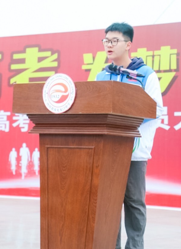 高三学生代表苏竑嘉同学激情陈词:每一次风雨兼程,必定彩霞满天,每一次翻山越岭,必定春暖花开,这一路的荆棘,一定会见证我们的自强,这一路的驰骋,一定不会辜负沉潜的力量,黑夜无论怎样悠长,白昼终会到来!