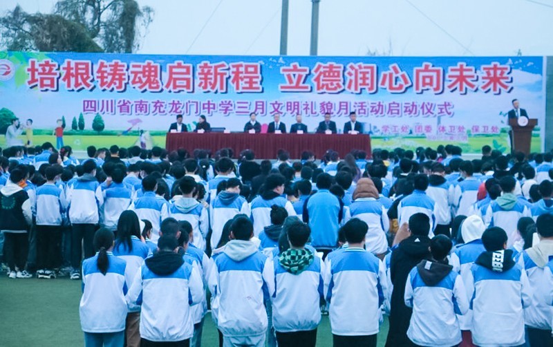 为进一步推动素质教育实施,落实“五育并举”,促进学校优良校风的形成,再掀讲品德、守礼仪、树新风的文明热潮,2月28日上午,四川省南充龙门中学举行以“培根铸魂启新程,立德润心向未来”为主题的“三月文明礼貌月”活动启动仪式,正式拉开了“三月文明礼貌月”活动的序幕。党委委员、副校长张洪波,工会主席万彩霞,学生工作相关干部出席启动仪式,全体班主任和全体学生参加启动仪式。启动仪式由学工处副主任杨俊主持。