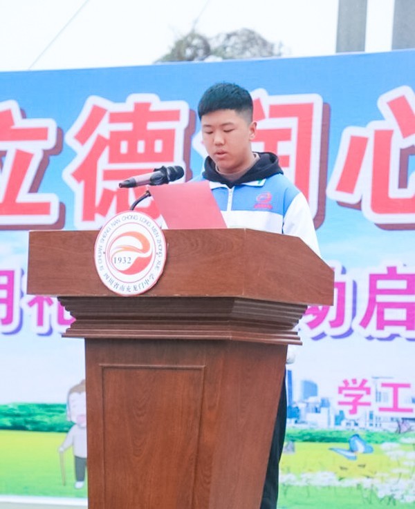 学生代表袁博文向全校同学发出做到“三别”“四带”“五无”“修身”的倡议,呼吁龙中学子要用行动践行文明礼仪,积极主动参与到龙中校园的文明建设,争做树新风讲文明的好青年。