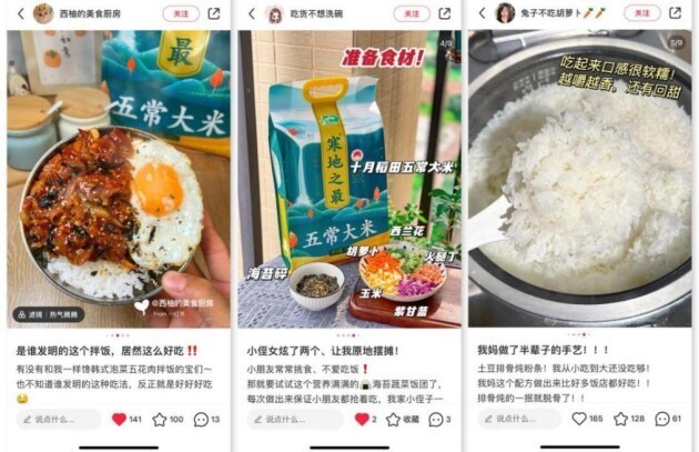 在社交媒体上,达人持续发布场景化内容,种草明星同款大米产品,双重背书产品好口感,引起广大用户与现代社会追求健康的生活方式产生共鸣,并自发成为产品的推广者。