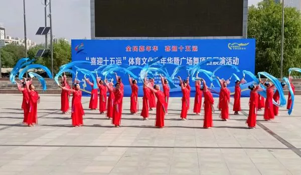 广场舞是舞蹈艺术中最庞大的系统,因多在广场聚集而得名,融自娱性与表演性为一体,以集体舞为主要表演形式,以健身为主要目的运动项目。表演风格着重观赏性、娱乐性、时尚型的兼容,但又不失优美、流畅、细腻之风韵,既有浓烈的地方特色,又有很强的时代感。来自我市近郊四区的14 支广场舞队伍在表演中,先后进行了不同种类、风格、地域的广场舞展演。精彩的展示引得观众喝彩不断,充分展现了金城人民喜迎省运会的浓郁氛围。