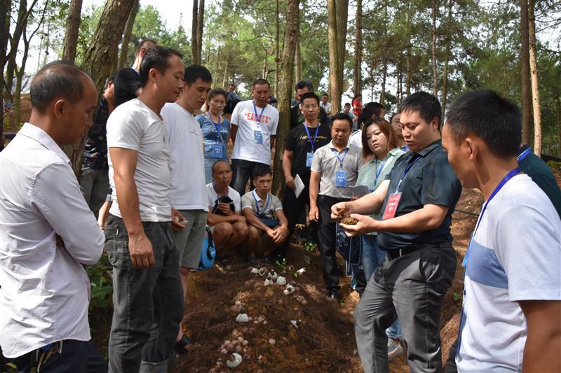 图为贵州省农科院食用菌专家正在为乡土人才讲解竹荪种植技术。