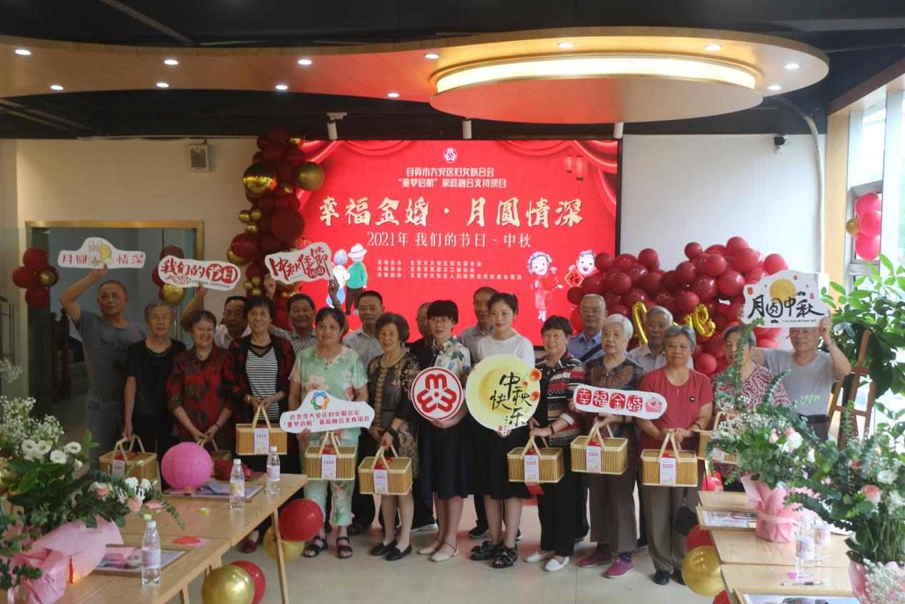 为弘扬尊老、敬老的优良传统,倡导婚姻家庭正能量,传承社区美德好家风。9月17日下午,由四川省自贡市大安区妇女联合会主办,自贡市灵犀义工联合会承办,大安区人民政府龙井街道办事处协办的“幸福金婚·月圆情深”——2021年我们的节日·中秋佳节活动在龙井华大生活馆举行。区妇联有关领导,10对金婚夫妇及亲友团共30余人参加。