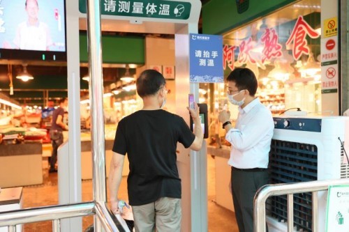 现代菜篮子农贸实行AI智能测温门检测