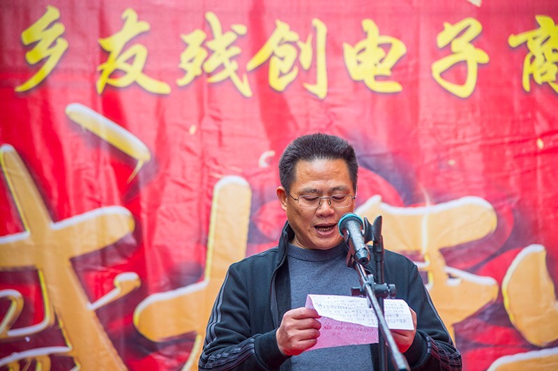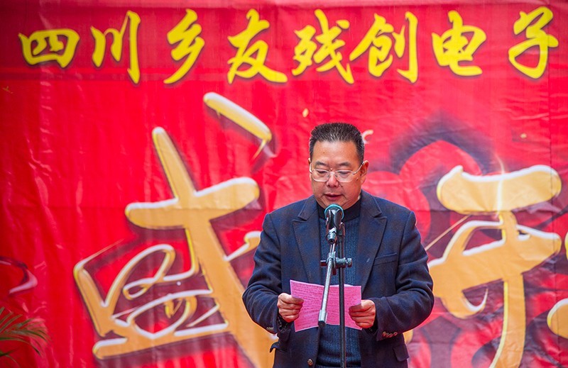 四川乡友残创电子商务有限公司总经理杨香树致欢迎辞、并介绍公司创建历程及主打产品。他在讲话中说道,乡友残创电子商务公司是在县残联各位领导的关心指导下,通过多次组织残疾人实施电子商务专业技能培训,残友们在学习交流中有了一个共同的志向,利用自己学到的电商知识,凭借西充有机农业大县的金字招牌,当地特有的自然环境资源,种养殖出优质的农特产品,十几位残疾人共同成立的电商平台。他们通过三源养寿、县三江有机甲鱼专业合作社、马龙竹编包装厂等企业单位达成产品战略合作,申请注册“蜀贡”商标,以互联网为依托,以西充有机农业大县为契机,以有机农特产品为支撑,以线上线下同步发展为方向,以订单和大中城市线下连锁超市为销售思路,把西充乃至全省的有机优质农特产品融入本公司投入市场销往全国各地。