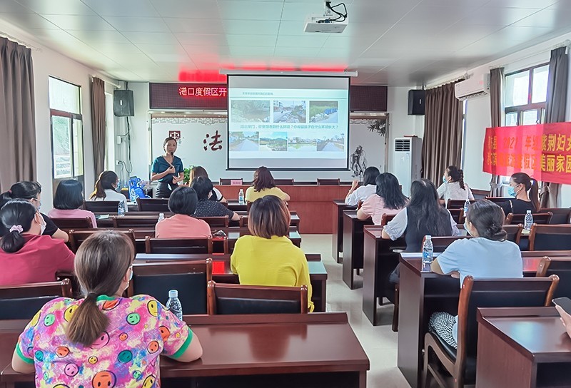 活动伊始,港口管委会副主任柯建娣致辞,希望广大妇女干部和群众以此次活动为契机,下苦功夫,主动担当,积极作为。随后,讲师通过现场讲解+互动的形式,结合县妇联《关于进一步推进“家慧美 惠幸福”——“美丽家园”创建工作的通知》中“四美”的标准向参与者讲解了美丽家园创建与美丽乡村建设的关系、意义与妇女群体在当中可发挥的作用,并从当地示范村和示范户案例中引导妇干们了解参与的具体途径和行动,推动美丽家园创建与乡村振兴战略有效衔接。现场还开展美丽家园有奖知识问答,大大提高了妇女干部和群众对美丽家园创建的认知度和参与可行性。