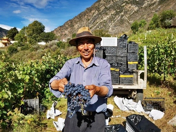 一大早,村民冲麦一家就来到自家的葡萄地里忙碌着,他将采摘下来的葡萄装好箱准备运往葡萄酒厂。“为增加收入,前几年在县委、县政府的号召下,我开始尝试种植酿酒葡萄。政府为我们提供了葡萄种子,葡萄酒公司教我们种植技术。等到葡萄成熟后,公司还会以高出市场的价格到村子里收购。”因调整产业结构尝到甜头的冲麦乐滋滋地聊起家常来,“现在我们村家家户户都正忙着收获葡萄,趁这好天气,我们全家出动,及时采摘葡萄。”