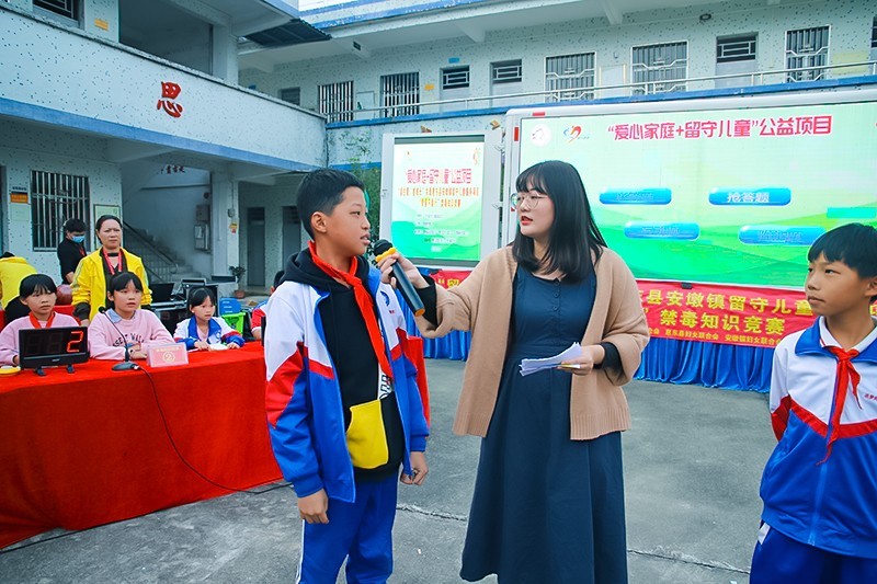 11月10日下午,由广东省妇女儿童基金会主办,明德慈善会支持,珠湖小学协办,惠州市妇女联合会、惠东县妇女联合会、安墩镇妇女联合会、惠东县爱心群社会工作服务中心承办的惠州市“爱心家庭+留守儿童”公益项目——“留住爱,童成长”关爱惠东县安墩镇留守儿童服务项目在珠湖小学开展“青春不毒行”禁毒知识竞赛。