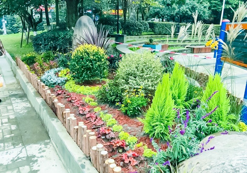 大家合理分工,有的负责搬运花卉、水泥,有的负责松土,有的负责测量栅栏高度、有的负责提水......大家互帮互助、齐心协力、精益求精,把花园里的20多种花草照花喜阴、喜阳的不同习性进行了布置,还为每种花做了科普插牌,方便邻居们辨识。经过9个小时的努力,社区微花园成为了活力广场一道靓丽的景观。志愿者们看着自己精心雕琢的作品,脸上洋溢着幸福的笑容,心里甜滋滋暖洋洋的。“看着我们自己动手打造的这片花园,真的很珍惜,都愿意积极去维护它。”杨义建开心地说。