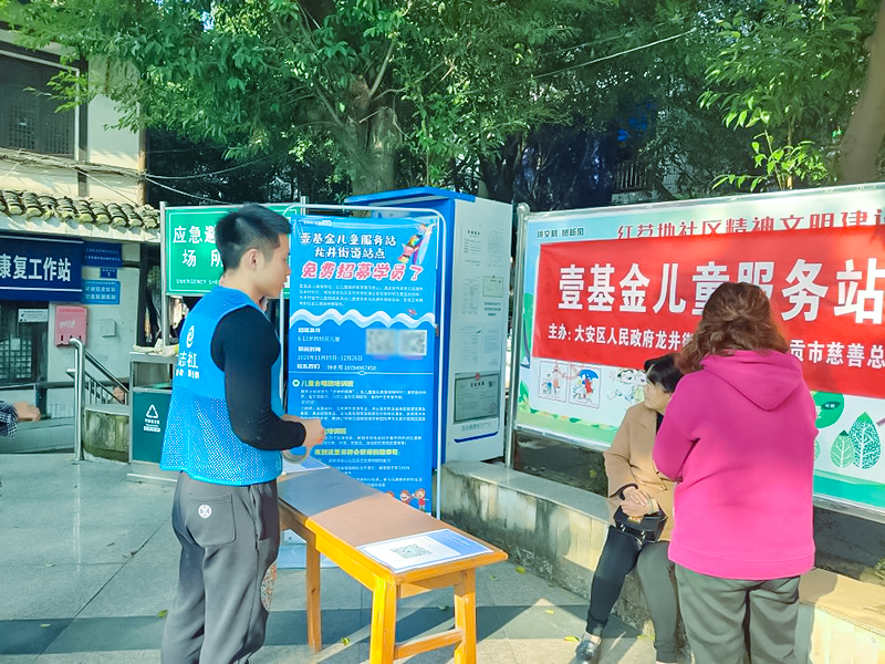 以儿童发展保护为核心,以建立安全友好型儿童活动空间为目标,为向乡村留守儿童、城乡流动儿童和受灾害影响的儿童提供课外支持服务,搭建社区儿童服务平台,由壹基金、四川原点公益支持,自贡市慈善总会、大安区龙井街道办事处主办,自贡市灵志社会工作服务中心承办的壹基金儿童服务站大安龙井站点于11月24日开启招募活动。