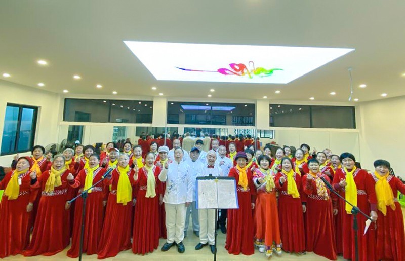 在合唱队红歌声中开始了今天的汇报演出,接着合唱队、舞蹈队、太极队分别带来了《鸿丰社区之歌》《24式太极拳》《祝福祖国》等共14个舞蹈、太极、合唱等表演节目。