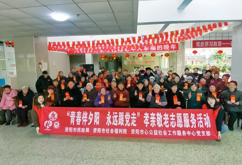 新春来临之际,1月18日,由四川省资阳市民政局主办,资阳市心公益社会工作服务中心党支部联合市社会福利院共同开展了“青春伴夕阳 永远跟党走”第10期孝亲敬老志愿服务活动。