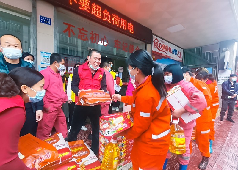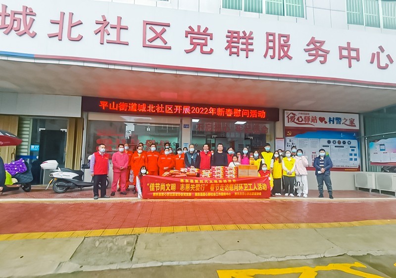 春节临近,为了让辛勤在一线岗位上的环卫工人过一个温暖的节日,爱心群党员、社工、志愿者等来到平山街道城北社区,为环卫工人们送去大米、食用油和面条等慰问品,让他们在寒冷的冬日里能够感受到温暖。过程中,党员向环卫工人致以春节的祝福,感谢他们为城市建设作出的贡献,并温馨提示他们一定要注意防寒保暖,安全进行作业。