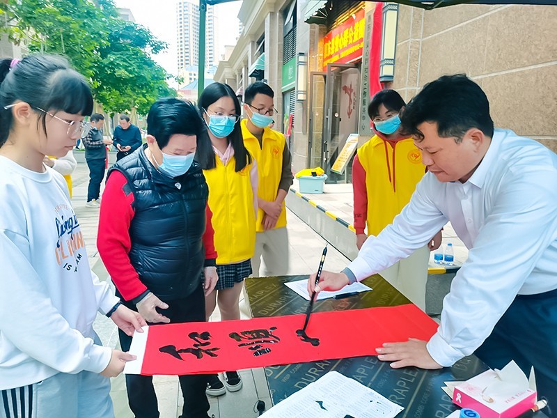 活动现场到处是志愿者忙碌的身影,为保障活动顺利开展,总共招募了16名志愿者参加本次活动。志愿者加入到裁纸、发放号码牌、对联晾晒等环节,在志愿者积极参与下,活动现场和谐有序,居民们在志愿者贴心服务下,领取到自己想要的对联,欢喜返回家中。