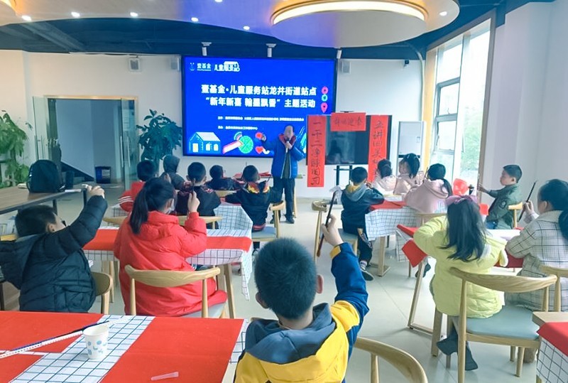 妙笔生花送祥瑞,翰墨留香迎新春。新春将至,为弘扬传统文化,传递节日祝福。1月22日,由四川省自贡市慈善总会、自贡市大安区龙井街道办事处、深圳壹基金公益基金会主办,自贡市灵志社会工作服务中心承办的壹基金·儿童服务站龙井街道站点组织开展“新年新喜 翰墨飘香”主题活动。