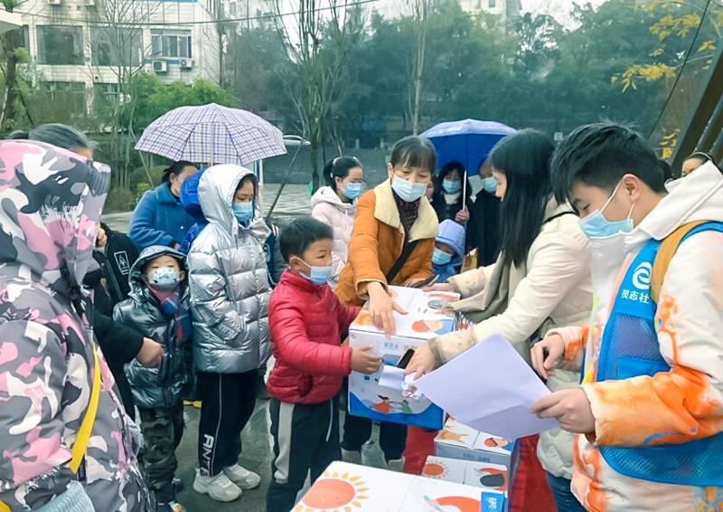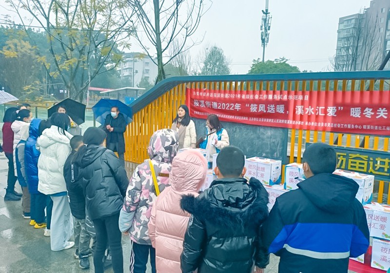 为推进四川省自贡市贡井区筱溪街道2021年社会工作服务试点示范项目,做好关爱困境儿童工作,让儿童切身感受到社会各界对他们的关爱。1月26日,在四川省民政厅支持、自贡市民政局、贡井区民政局的指导下,由筱溪街道办事处主办,自贡市灵志社会工作服务中心、筱溪街道社工站承办、向阳花开儿童关爱社协办的“筱风送暖,溪水汇爱”暖冬关爱行动在筱溪街道青杠林广场圆满开展,为辖区内20名困境儿童发放价值近4000元的温暖包。