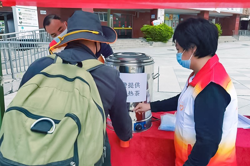 每天早上,志愿者都会提前到达车站,分工做好搭建帐篷、煮姜茶、布置防疫物资等环节,为服务旅客做好充足准备。志愿者的服务,一方面助力车站工作人员做好疫情防控工作;另一方面,让返乡人员感受到惠东这座文明之城的温暖。