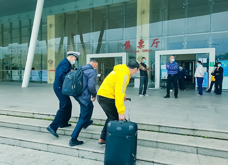 “春节回家,要勤洗手,到哪都要戴口罩。防疫不放松,安全过大年!”“请配合做好疫情防控工作,戴好口罩,没有口罩没关系,我们免费送一个。”“进站需要查看手机行程卡,您行李比较多,我可以帮忙拿一下。”志愿者们的每一个善意举动,每一句贴心问候,每一次热情服务,每一项主动帮忙,都让返乡人员感受到暖心暖意。