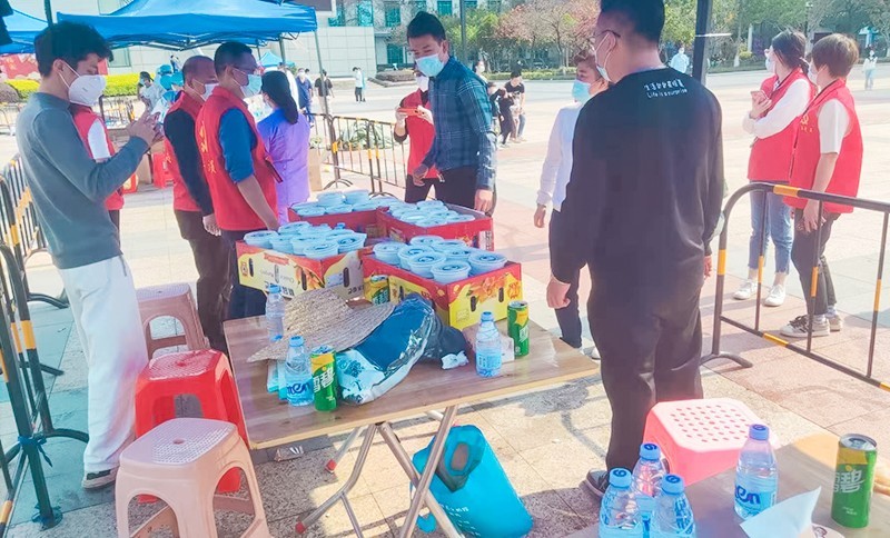3月3日晚上,新广场核酸检测点因居民参加核酸检测数量突然增加,工作人员为充分做好检测工作,让居民的安全得到更好保障,紧急组织和协调将原本8条检测通道,增加到12条。临时新增任务,对一线工作人员体力和能量消耗带来较大挑战,惠东县锦辉大排档老板了解情况后,主动送来60份宵夜、2箱矿泉水,让工作人员得到有效补给。