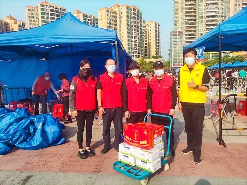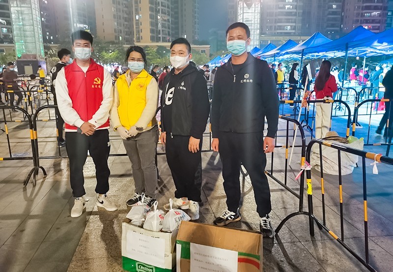 3月2日下午,维妮家小吃店给大岭核酸检测点送来了100瓶奶茶,“甜”到医护人员和志愿者的心里。晚上汇锋肠粉爱心商家给新文化广场核酸检测点的志愿者送来了60份热气腾腾的肠粉,小林家私房菜馆给大岭核酸检测点志愿者送来了30份炒粉以作宵夜,美食驱走了志愿者的疲劳,让大家以更好精力投入到这场战“疫”当中。