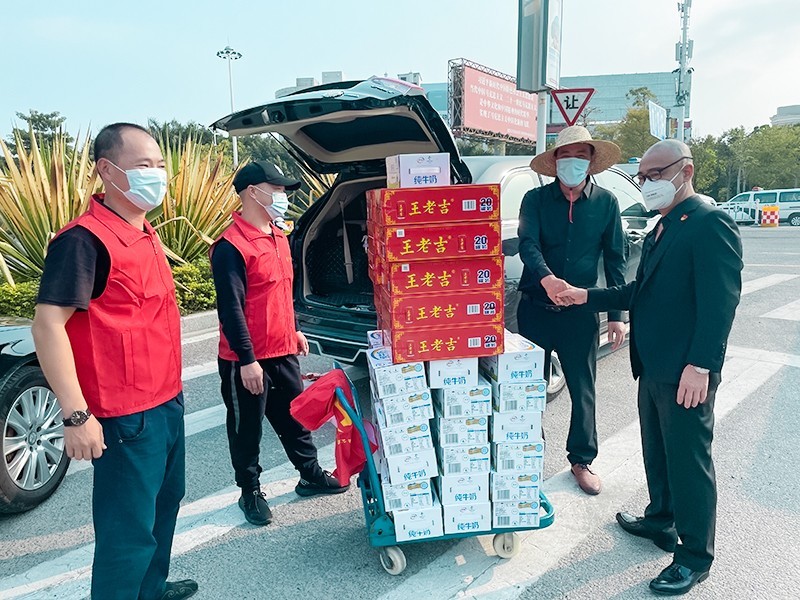 3月3日下午,平山美多食荟街爱心商家向大岭各核酸检测点志愿者送去了60份午餐和65份柠檬茶。不仅有三餐的投喂,还有下午茶和各种饮料,让志愿者暖胃暖身更暖心。喜先生甜品爱心商家在下午送了80份糖水到新文化广场,惠东县海陆公益协会捐赠了12箱王老吉和48箱牛奶,满满的“投喂”都化作了志愿者坚守奋战的美好动力。
