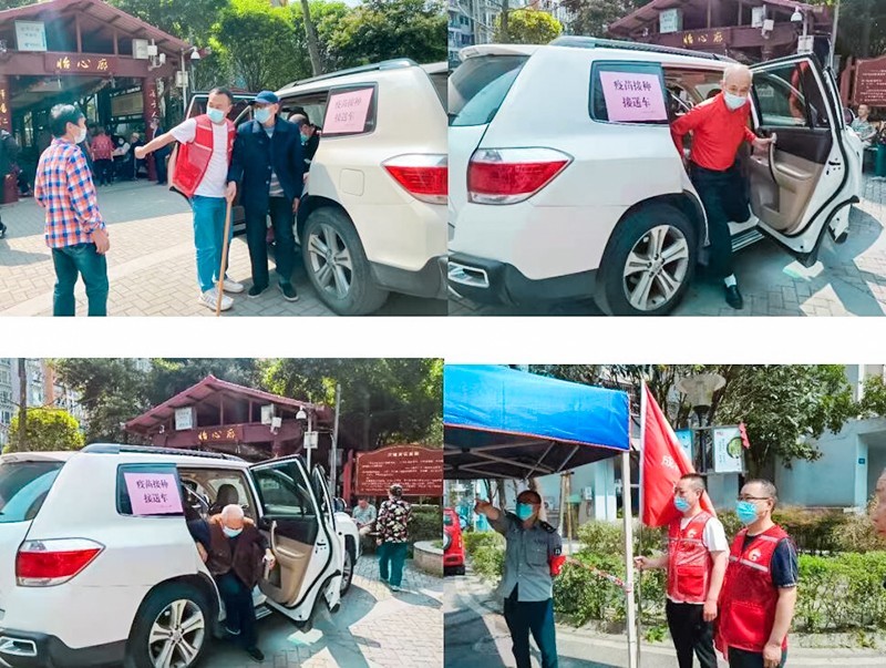 为了方便距离接种点较远的社区老年人接种疫苗,社区特别安排专车进行接送。
